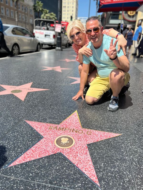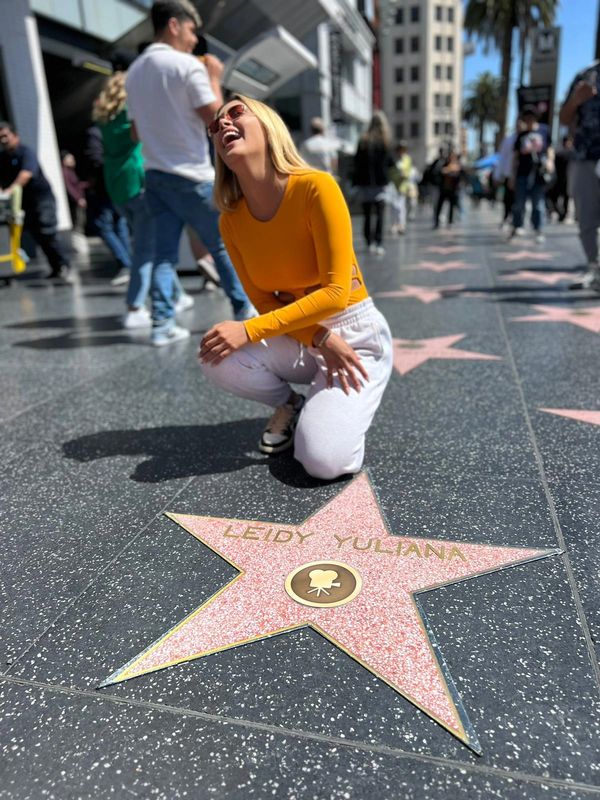 The Walk of Fun is a new and different attraction for entertainment to passers by on The Hollywood Walk of Fame. You will receive a personal photograph with your name featured on the Walk of Fame star that you can keep as memories last forever. The Walk of Fun’s unique metal, gold-colored alphabet letters are placed on stars on Hollywood Boulevard, forming a personalized name on a star and then “camera ready.” An on-site Photographer will take a picture and a cinematography video capturing your classic Hollywood moment.